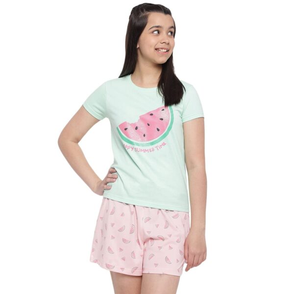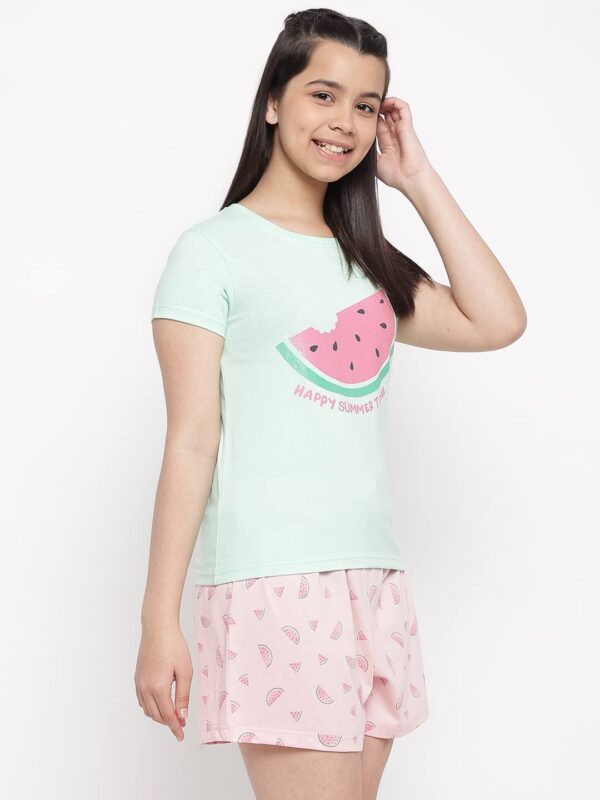Lil Tomatoes Cotton Girls Night Suits, Green, 11-12 Years