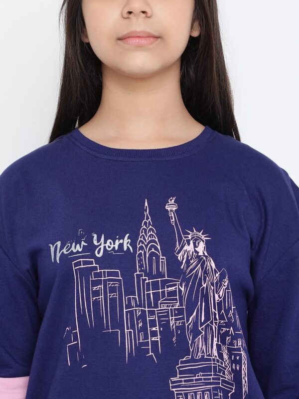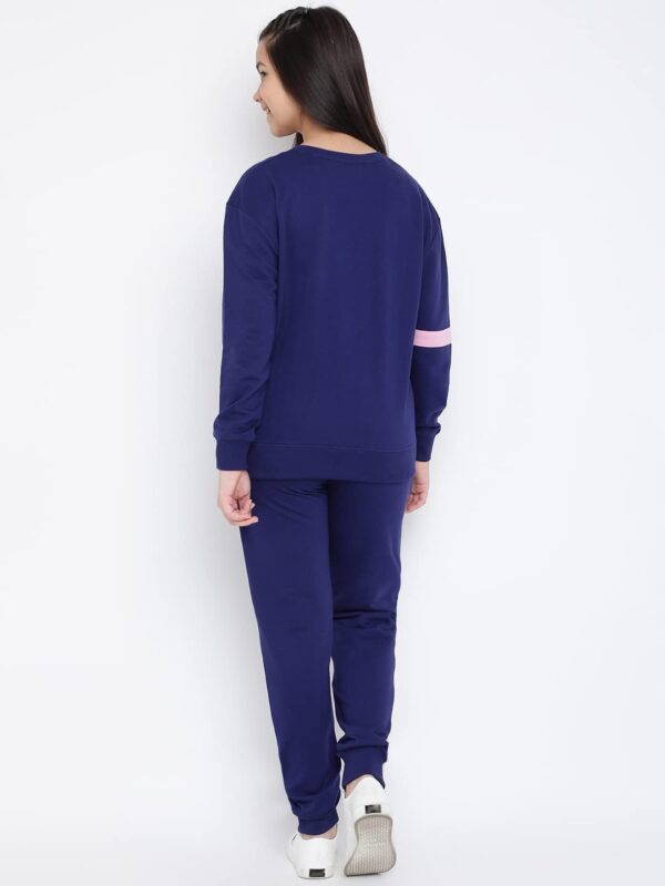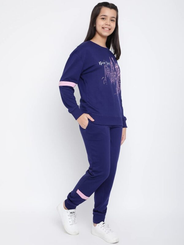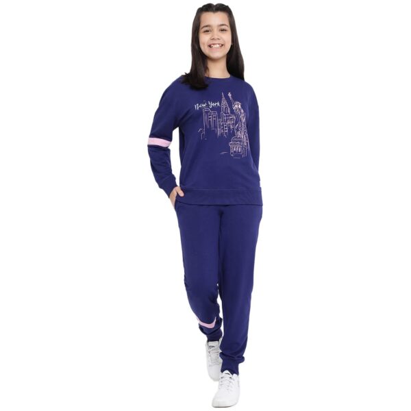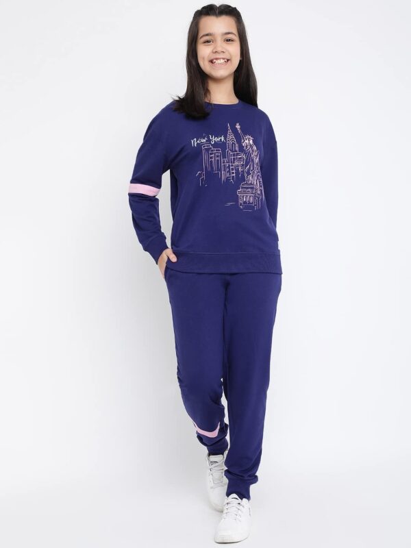 Lil Tomatoes Girls Drawstring Regular Fit Printed Round Neck Looper Cotton Track Suit NAVY