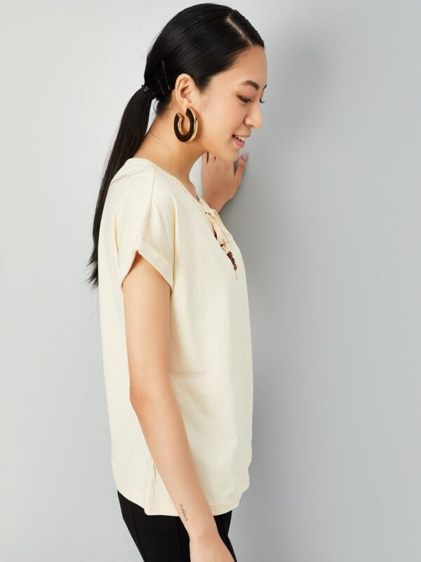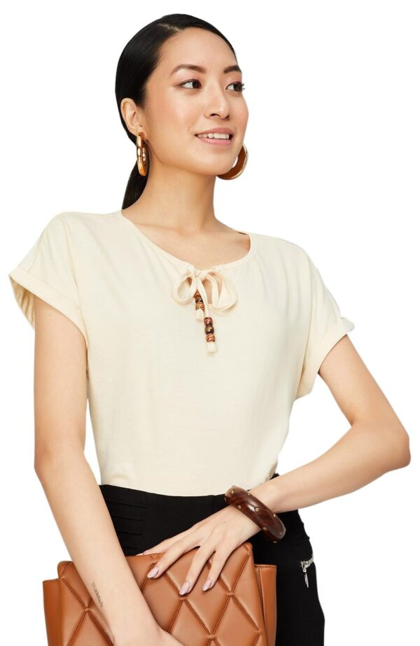 - Women Solid Tie-up Neck Top