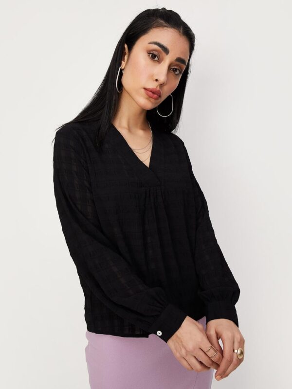 - Women Textured V-neck Top