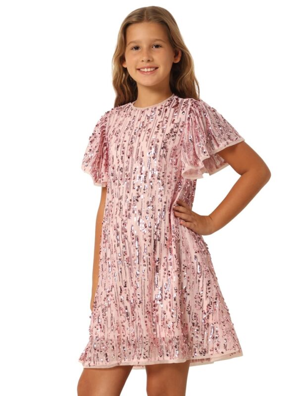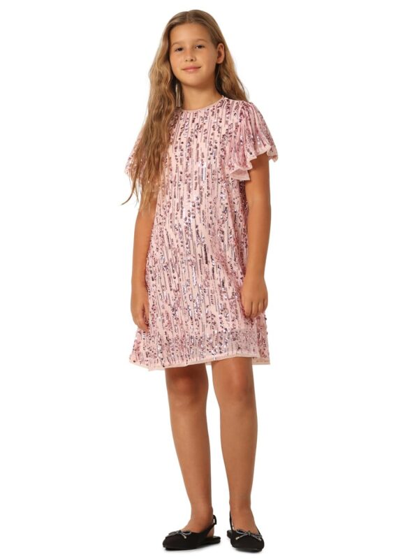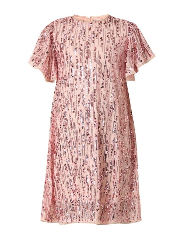 VERO MODA Girls Sequins Polyester Pink Above Knee Length A-Line Dress